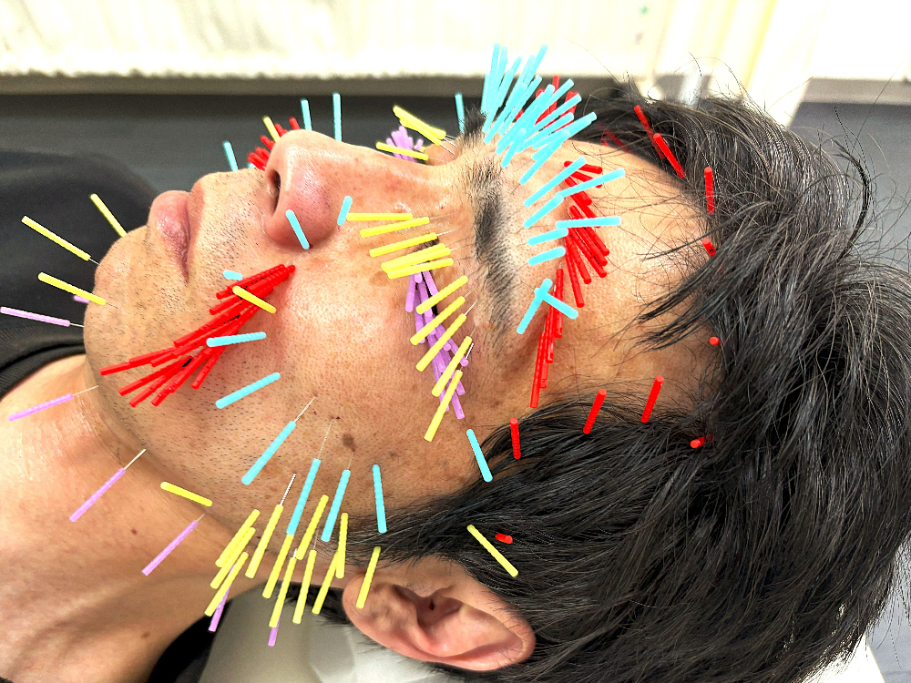 施術内容)首肩へのトリガーポイント鍼、三叉神経美容鍼